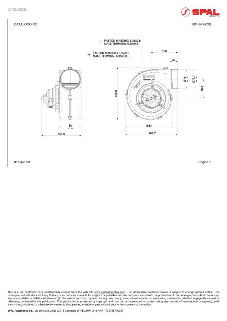 Код: 30001012 Категории: SPAL AUTOMOTIVE, Единична вентилация 24V, КЛИМАТИЗАЦИЯ, ЦЕНТРИФУГАЛЕН ВЕНТИЛАТОР 24V